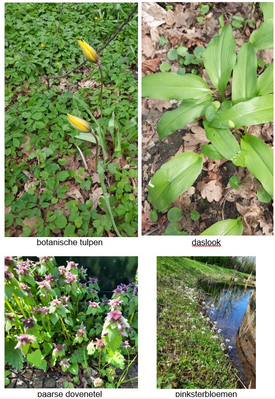 Overal in het bos staan bloemen te bloeien; langs de grasrand tegenover het Torenfort staan de pinksterbloemen! En daardoor zie je ook veel vlinders: citroenvlinders, oranjetipjes, kleine koolwitjes. (Helaas zitten die niet stil, dus daar heb ik geen foto’s van kunnen maken).